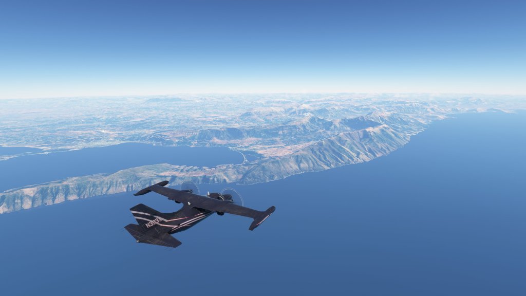 After that we headed south west over the Adriatic. It didn’t take long for Albania and then Greece to come into view, even with the haze being presented by the live weather. Stunning mountain landscapes came into view beneath.