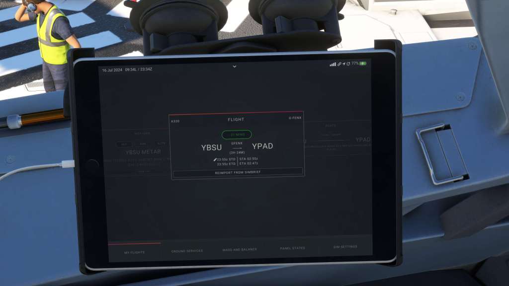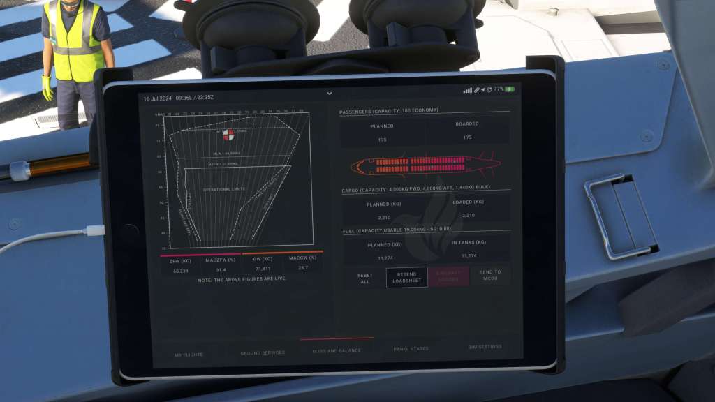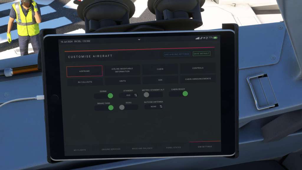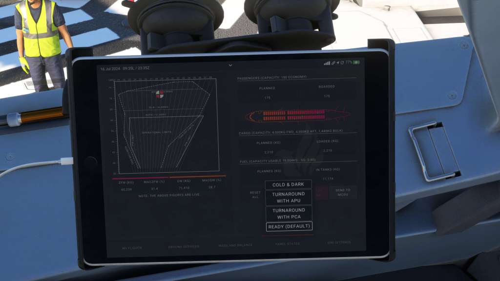 I haven’t gotten myself into it yet but the aircraft does have support for GSX and can even sync the GSX passengers boarding the airplane with the boarding times in the EFB.