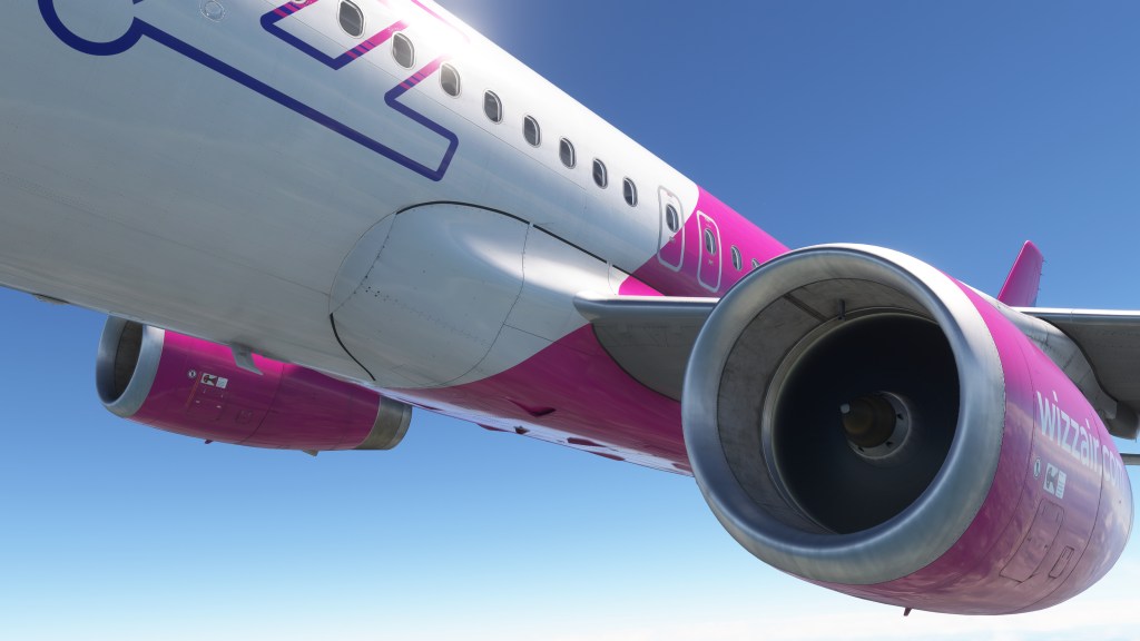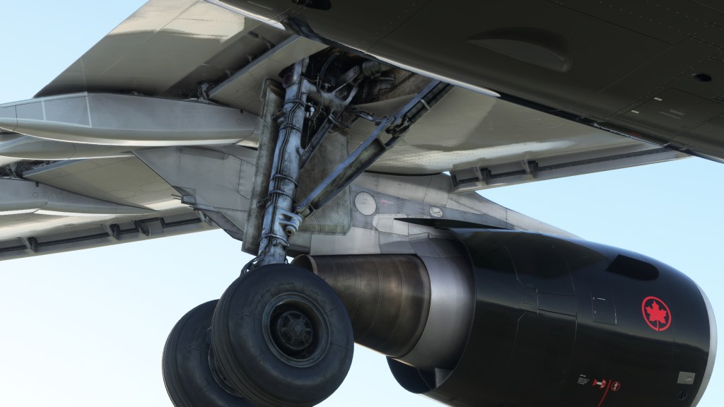 The same kind of detailing can be found on the outside. I’ve circled around the aircraft and looked closely at everything from wheels and brakes to the exhaust on the APU to the nav lights, engine nacelles and the wing roots. Even the various antenna on the top of the aircraft are well merged with the model. Simply put, its exquisitely detailed in every place that I looked and it very slightly beats out the work that iniBuilds has done on some of their recent airliners and its ahead of what PMDG has done with the 737 line too.