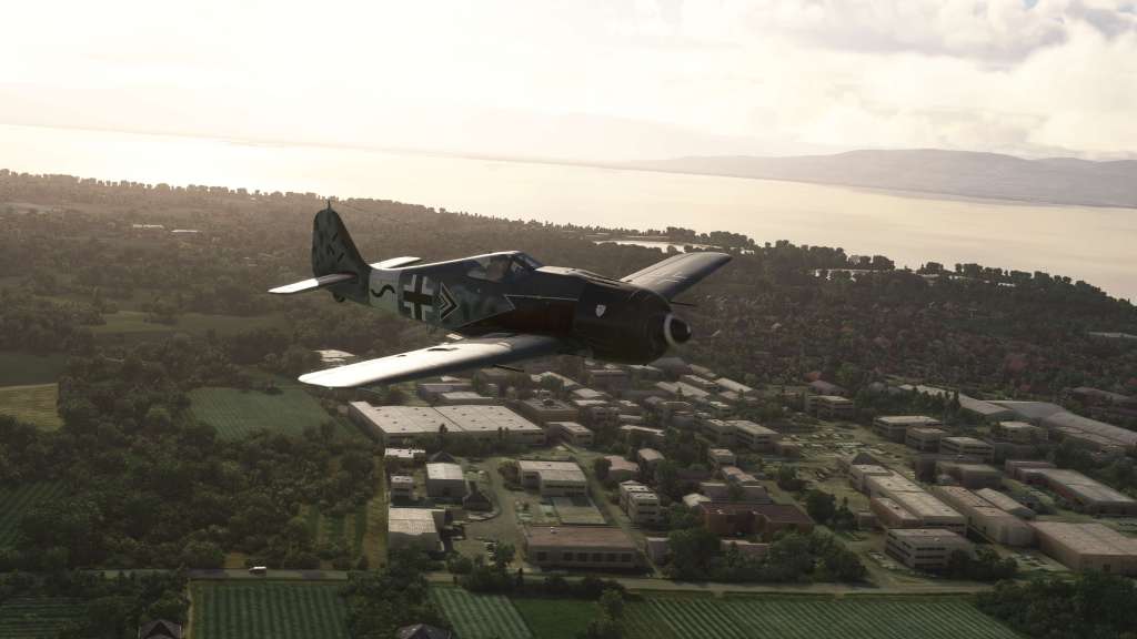 I did set myself up a little low for a landing and here the traditional concrete runway is a little different from the grass fields that I’m more used to with Fw190 flying in IL-2 and sometimes DCS. Seeing over the nose is difficult and a little higher on the approach should provide a little more visibility before it all disappears beneath your sight line.