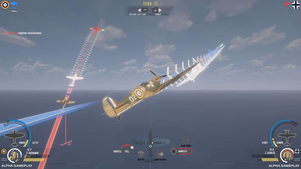 Each turn plays out just a few seconds of the air battle. You give guidance on what to do with your virtual pilot and then they fly according to the instructions. There’s a flight model at work here as well as a G force model so aircraft can stall, spin, get slow or stay fast through various climbs, dives, twists and turns. Pull too tight and your pilot will lose consciousness. It’s all very well realized just like more conventional style combat sims.