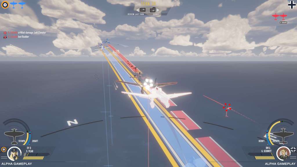 Initially I tried keyboard controls to control the airplane but found the mouse controls easier and more precise to manage. After that, things began to fall into place pretty quickly. The UI tells you a lot from the energy state of your airplane to where your airplane will be in the next few seconds (i.e. your next turn). If you want to shoot down the target ahead, you switch to targeting mode and the game gives you some probabilities on if your shots are going to land. Then you run it through and several turns later you’ve got the bad guy shot down… maybe! The nice thing is that it then plays back to you once the mission is complete turning your turn based battle into a cinematic dogfight.