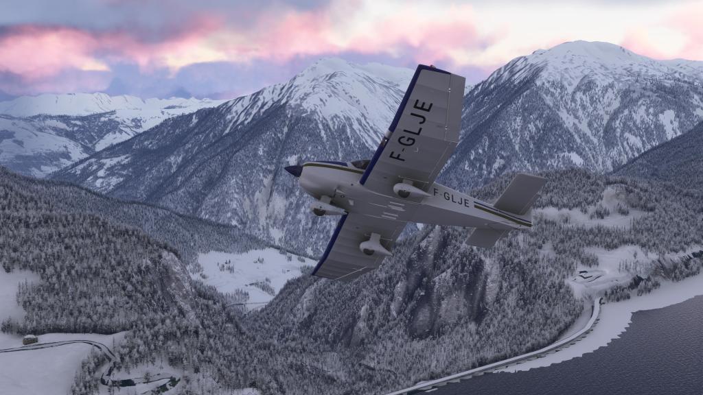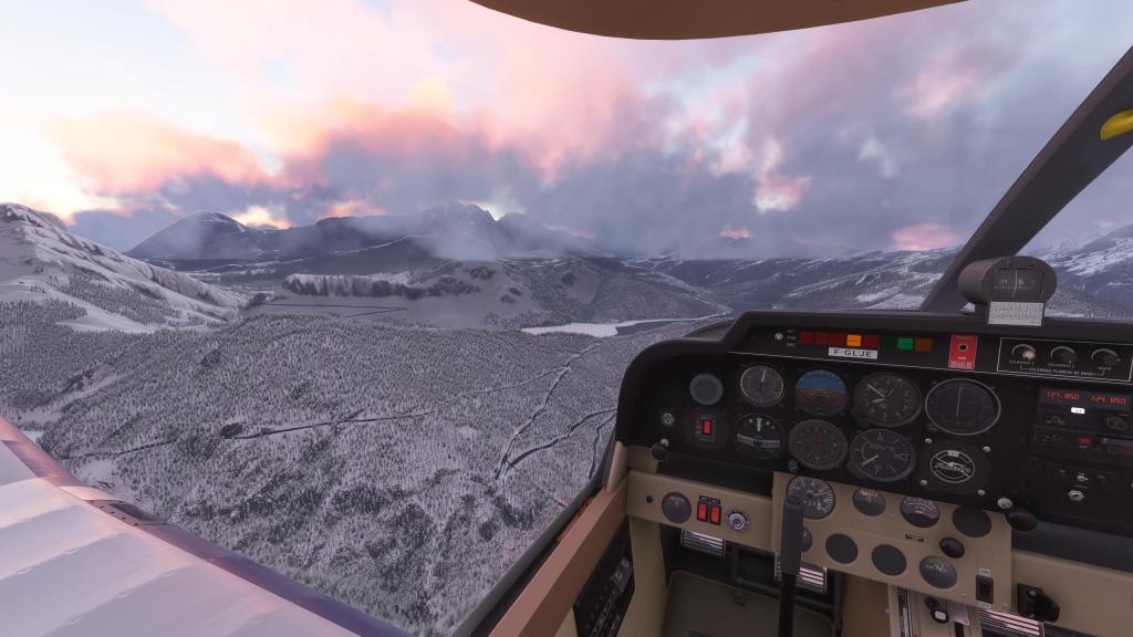 This kind of flying is aided immensely by MSFS 2024’s tessellated ground technology that, together with various AI techniques, helps make the mountainsides and various passes go from a bit of a blobby mess in 2020 to the visual highlight that it is in 2024. Another thing that the new sim stands out in is low light situations where the sun is just rising and there’s a fair bit of bounce off of darker clouds. This was really spectacular the whole way along.