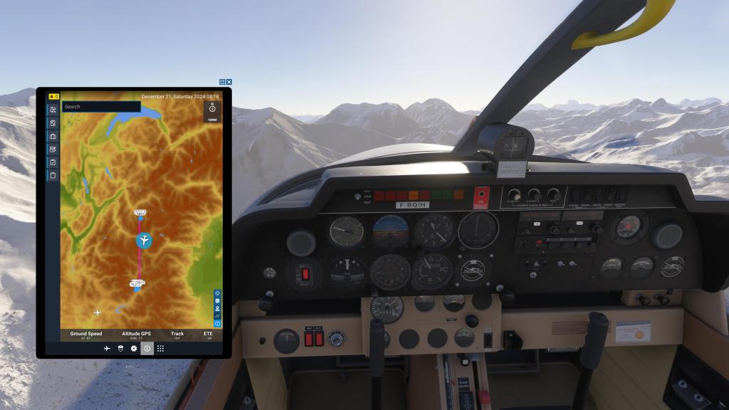 Starting from Megève Altiport (LFHM) in the dawn hours, I set out with the goal of navigating my way through the Alps with the DR400. Yes, I made ample use of the tablet’s map to help with some of the positioning but the real challenge here was the performance of the DR400 and the tall mountains. While some hills I could climb over, others were nearly impossible with the little Robin. That meant working my way around and going through various mountain passes. That can be a ton of fun!