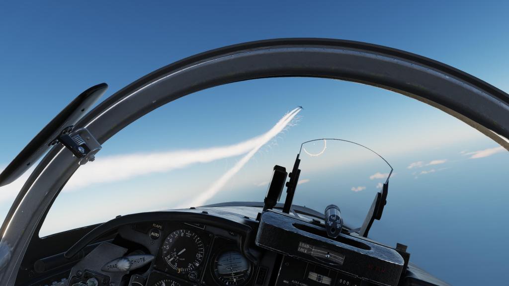 There was a third problem too… the Master Caution was lit and my left fuel tank was extremely low. I hit the crossfeed to keep both engines going (at least I think that’s how it works in the F-5) and decided it was time to make a run for it. At minimal throttle levels.