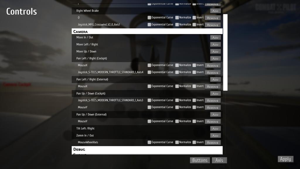 Key bindings are broken down into Axis and Button assignments and I was able to assign nearly every button and axis I wanted to without much trouble with one or two exceptions. Everything bound just fine though I was having trouble recognizing the full travel of my throttle axis initially. I eventually solved that problem with a ‘normalize’ check box in the controls system. Frankly, any weirdness here I would have chalked up to it being a pre-alpha but everything was generally working properly which is great.