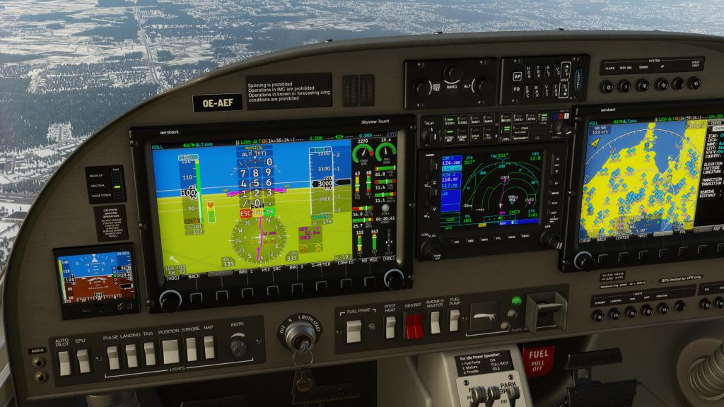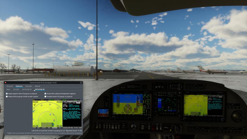 You do still have the GNS530 as a default GPS system and you’ll still need to use that for some of the navigation efforts. If you don’t like that, you will eventually be able to use the RXP GNT750 or TDS GTNXi Pro options if you purchase them (separately). These replace the GNS530 and have support baked in by Aerobask. They have also programmed a ESI-500 as a backup display. All of these are poppable into their own windows too if you want that.