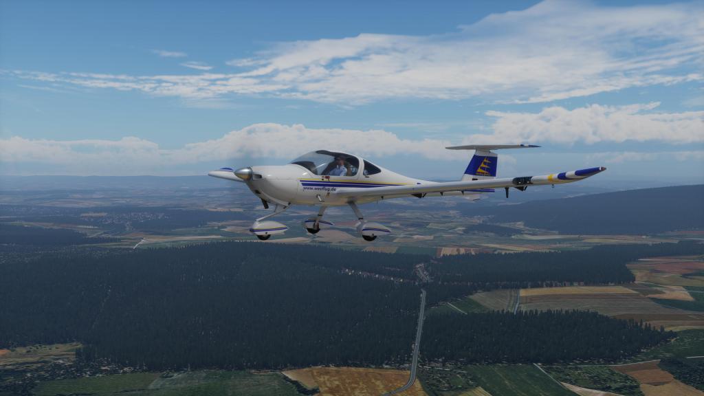 Taxiing is a bit sensitive as the airplane, like a lot of Diamonds, has a free-castoring nosewheel and steering is done via the brakes. Its easy enough to do but it can get out of hand if you’re not careful on the controls (or dialed the sensitivity back a bit).