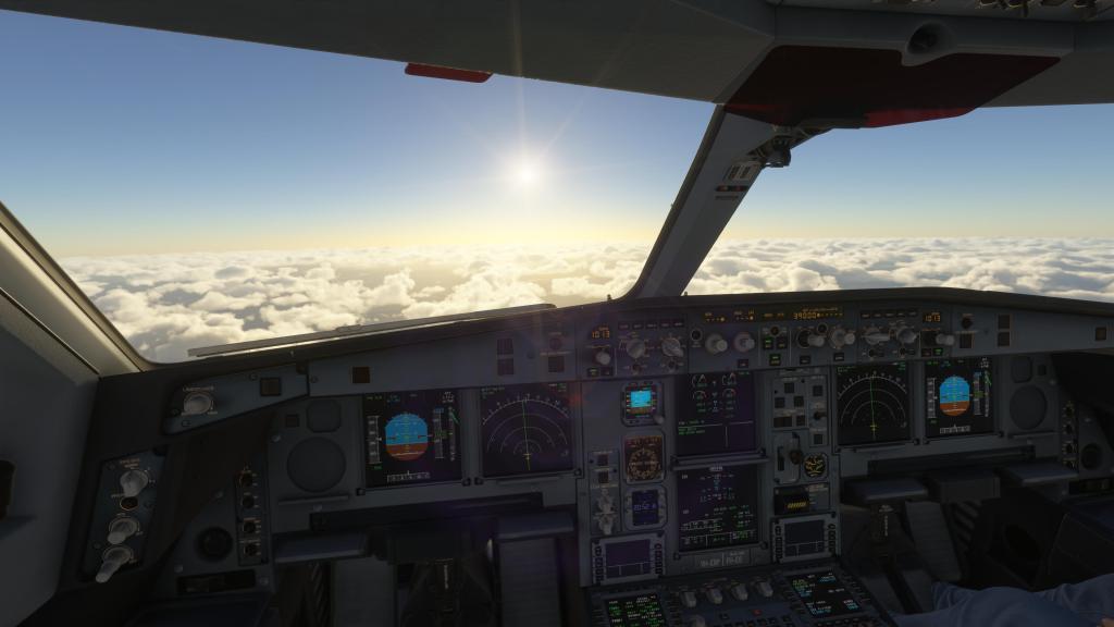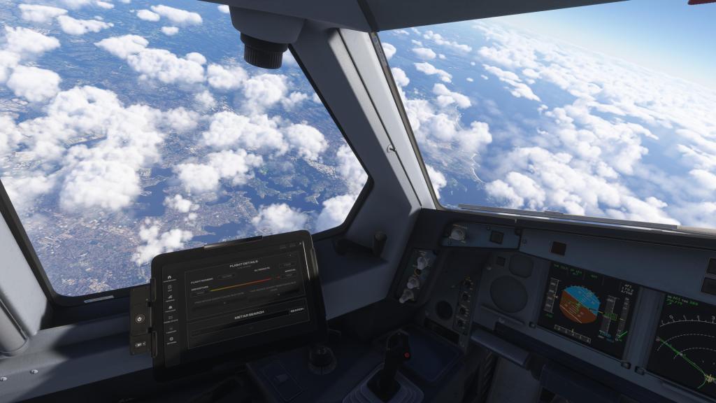 As the flight continued on, we levelled out and cruised towards our destination of Sydney Australia. Enough time for a quick look around the cabin which, in this included livery wasn’t branded on the interior, yet still managed to look pretty good. The doors from the cockpit to the cabin work and most of the details are excellent. I still can’t believe this is an included airplane.