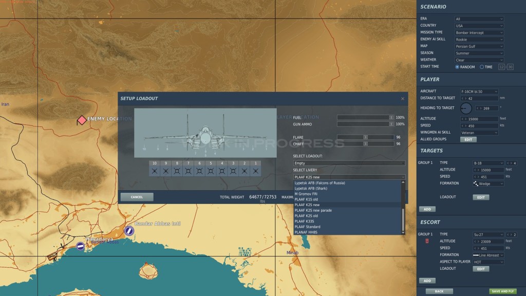 Eagle Dynamics say that it will have customizable scenarios from air to air, ground attack, and escort to SEAD and anti-ship. They also say you’ll be able to select and sort by different eras, fine tune loadouts, set time of day, weather, and use carriers.