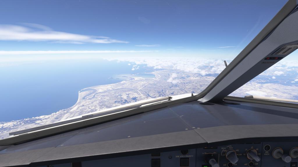 After things are looking good, I start to test out what kind of time compression I could get away with. I was able to increase it twice or three times without too much trouble. Unlike earlier iniBuilds MSFS airliners, the A330 doesn’t seem to have very much trouble holding altitude or cruising along on the path despite some modest time compression. It does, however, struggle a bit when there’s a larger course change and so I did have to drop back to 2X mode to ensure a more reliable line.