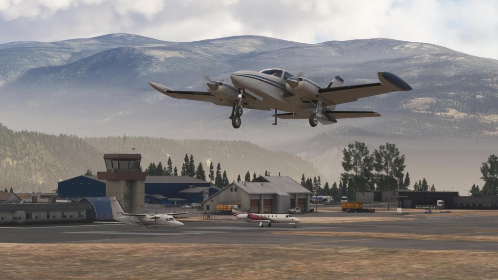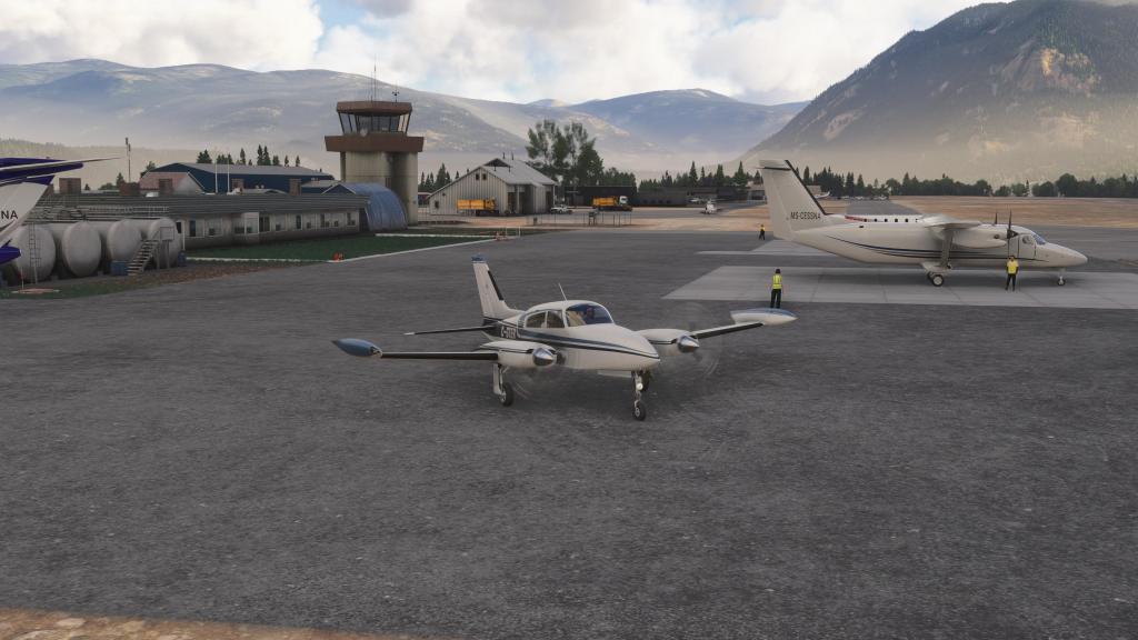 My mission was to carry three passengers from Castlegar, British Columbia over the Rockies to Tofino, BC. A reasonably long distance sortie for this twin engine GA airplane. CYCG, West Kootenay Regional Airport, aka Castlegar airport is one of the custom scenery airports added to MSFS during the Canada world update and its a fun mostly GA airport nestled in the interior of British Columbia. Mountains and scenic views all around! With live time and live weather on, the challenges of flying through the mountains would surely make for an interesting journey.