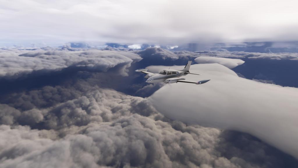 After quite a long time with just grey ahead we finally achieved a breakthrough. Nothing is as satisfying as breaking through bad weather in a GA sized airplane. Phew! The ice build-up slowly began to melt and ahead we were now looking at some incredible cloudscapes and a bit of turbulence from time to time.