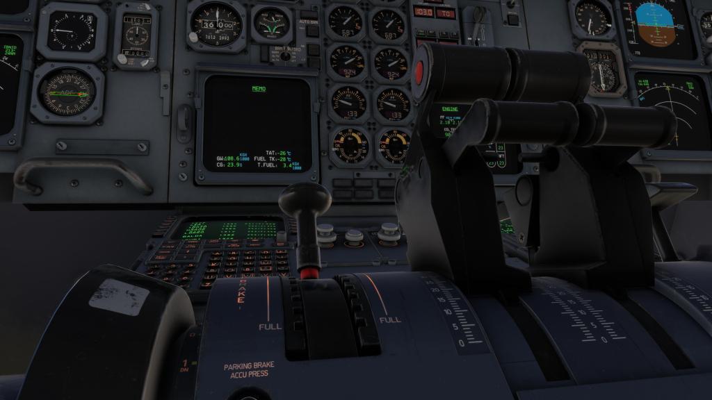 Lighting on the aircraft on a whole is quite good. With realistic cargo ops you may find yourself flying at night and the A300 is great looking and very functional. Dimming and brightening up the displays works well, exterior lighting is both functional and beautiful, and generally its just fun to fly at night as it is in the day.
