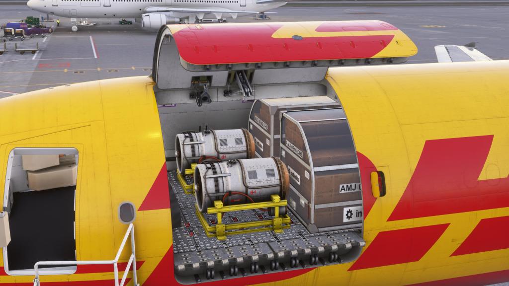 Meanwhile, the freighter version includes a small selection of cargo types including F1 race cars, horses, and a few different standard cargo bins. One of them will read out the SimBrief cargo data and use that weight information as a kind of pre-set though the other cargo loads are arguably more fun.