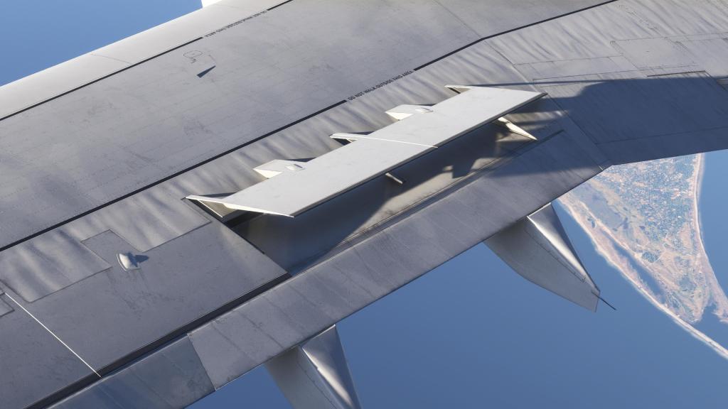 Let’s start with the exterior of the aircraft where the modeling is extremely detailed and matched by some extraordinary work on the textures. Sunlight reflecting off of the various surfaces reveals some impressive artistry and they’ve elected to offer a slightly dirtied and aged aircraft. The aircraft skin has wrinkled, as aircraft tend to do, after long service lives.