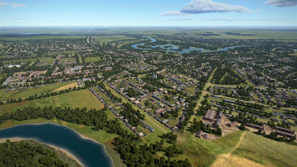 The style of the map is very much of a “green” one featuring plenty of agricultural areas with interspersed rivers, road, rail and a mix of small and larger villages, towns, and a few cities. This makes it most like the Kuban map at a core level without the more arid steppe for Stalingrad or the autumn or winter scheme the dominated the Moscow map.