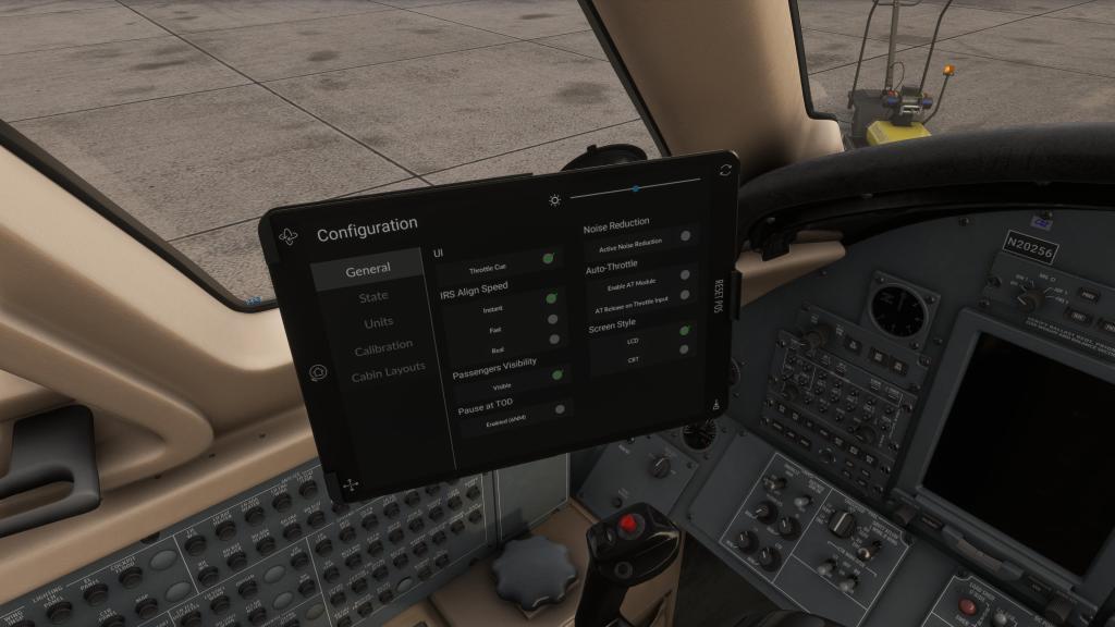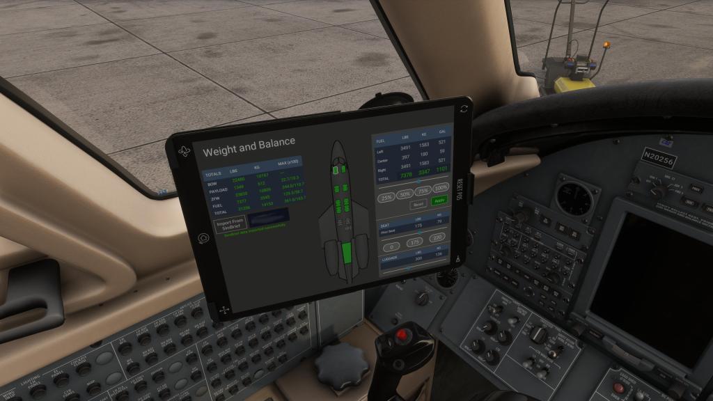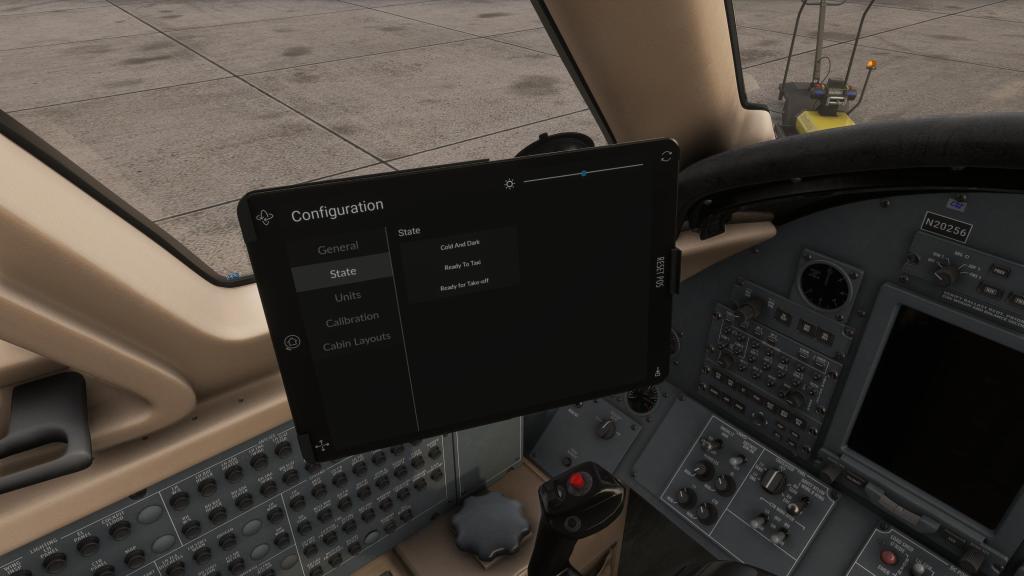 The aircraft incorporates an EFB which sports a similar experience to that of the one that I reviewed on the company’s Piaggio P.180. The tablet gives you even more functionality with SimBrief import support, Navigraph suport, state saving (Cold and Dark, Ready to Taxi, Ready to Takeoff), ground system management (doors, coverings, external power) as well as a few fun features like the ability to set different options for the food service.