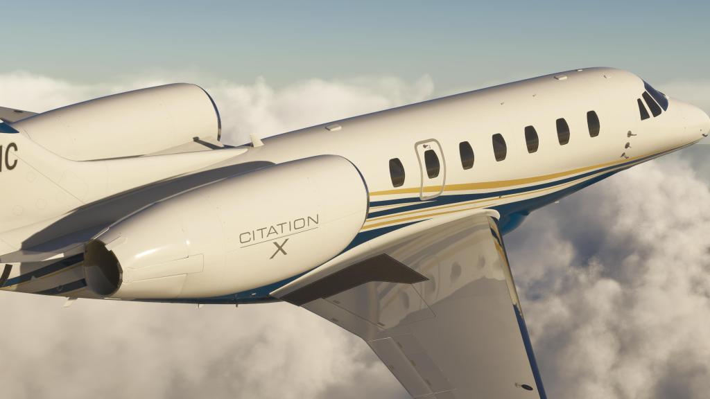 This variant represents the first iteration, the Citation X and not the later Citation X+. The curved wingtips are a feature added late in the original’s production run before development switched over to the Citation X+ which improved speed to Mach 0.935 and introduced the Garmin 5000 suite into the airplane. We’re flying the original with this release!