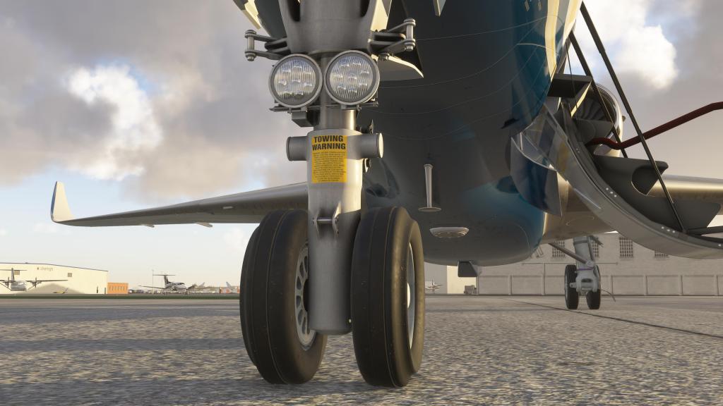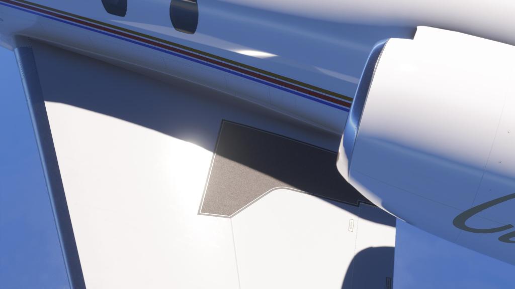 Flight FX are another one of those developer teams that have been busy honing their skills and making some visually and aurally impressive aircraft. Their previous release, their P.180, is an airplane that I put a lot of time into recently and it was visually impressive in nearly every regard and that also applies here. I think the Citation X is actually their best work showing a clear series of improvements from types like the HJet through the Vision Jet, P.180 and now the Citation X. The top of the airplane is quite clean, as you’d expect from a business jet, but there’s a suitable level of scratches and wear and tear along the bottom. Its subtle but well done. Everywhere from the landing gear to the subtle curves of the winglets are impressive and stand up well under even the closest scrutiny. The developers report using the detail mapping technology that MSFS 2024 supports to help achieve this effect. It works!