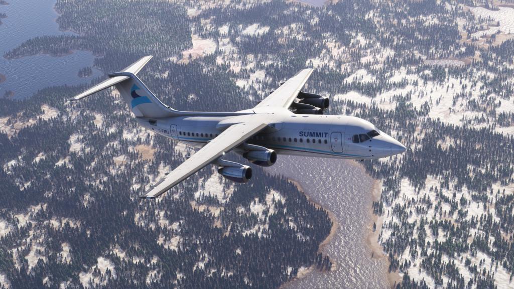 Few aircraft are cleared to operate from London City airport but the RJ and 146 before it were regulars in their heyday. Moving halfway across the world, the RJ is still flown in Canada with North Cariboo Air and Summit Air (both represented in available liveries) serving both larger hubs and smaller airports. Northwest airlines used to fly the RJ85 between a variety of destinations in the midwest of the United States. Or fly around with Malmo Aviation with its colourful Swedish football team livery. Of course, this is a flight sim and you can fly this airplane almost anywhere.