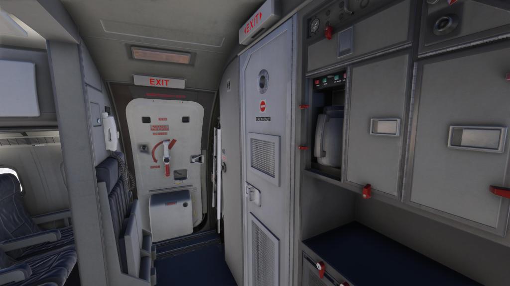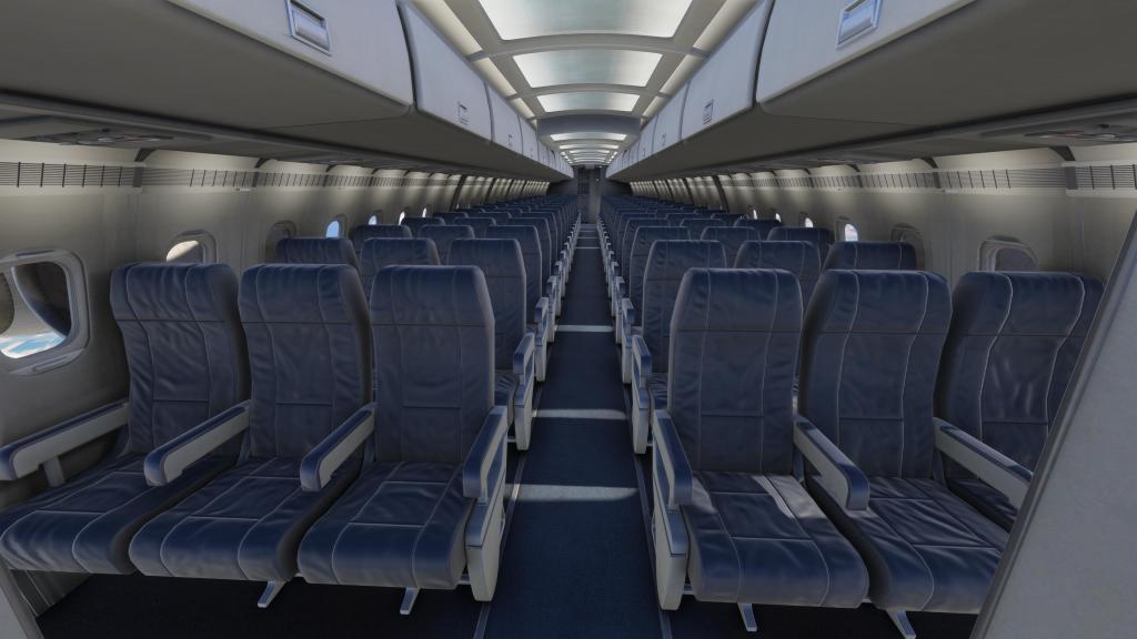 Recently added, the QT freighter variant has its own unique cabin space with its own configuration and dynamically loaded cargo. There are no options for different types of visuals for the cargo and instead you have standardized pallets. It is, after all, the most common type of thing you’d see in the back of similarly equipped BAe 146 freighters so that’s alright. The number of pallets loaded are determined by weight.