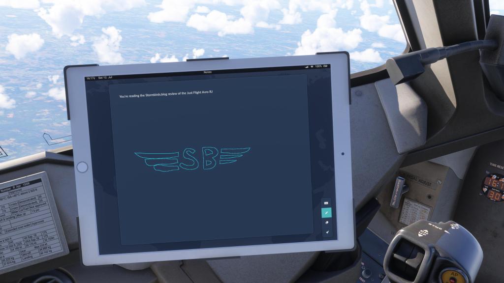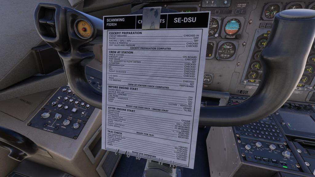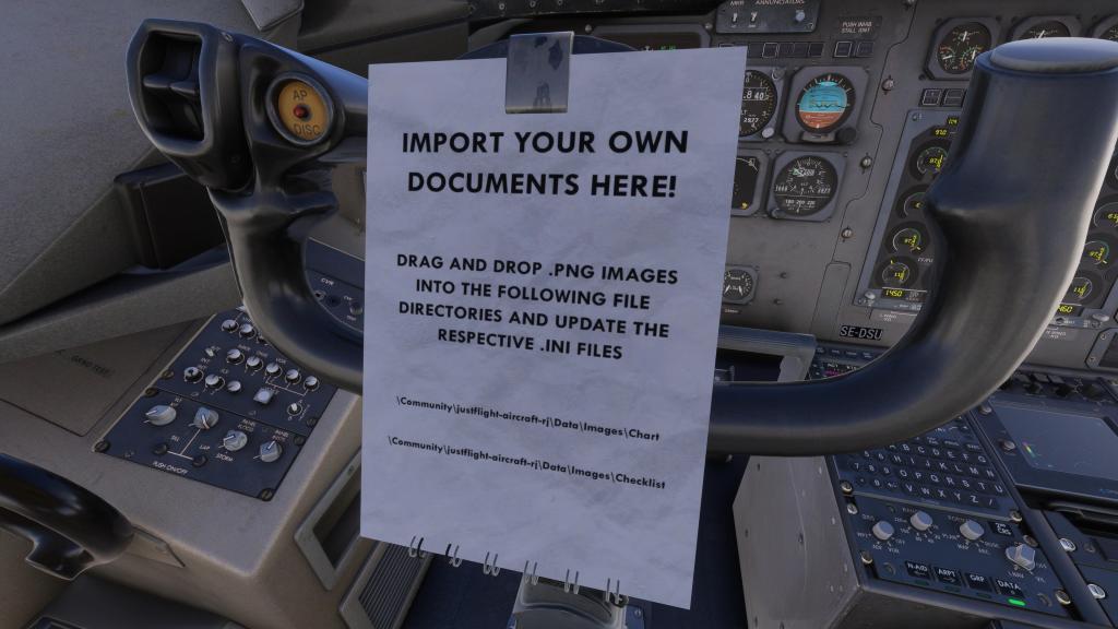 There are some nice extra features too such as the ability to click a hotspot in the cockpit to get realistic V speeds attached to a paper chart. Or the paperchecklist which is attached to the aircraft’s yolk. You can even import your own documents in there.
