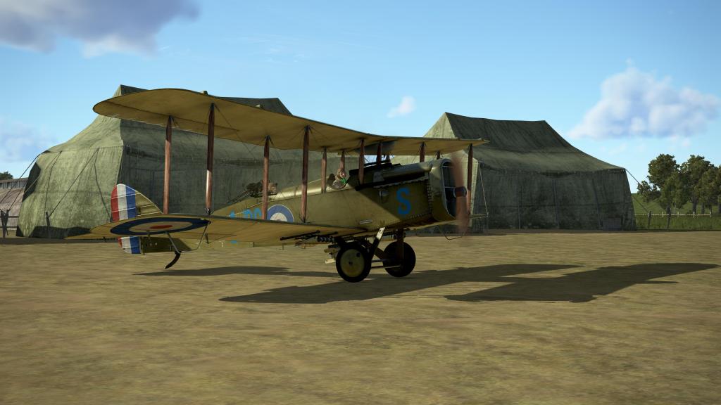 Feeling pretty good about myself? I thought I’d try out a new aircraft to me. I had yet to fly the R.E.8 so out it came. I loaded it up with a similar bombload, got things ready to go, started the engine and took off down the grass runway looking forward to another strike mission on the enemy’s HQ.