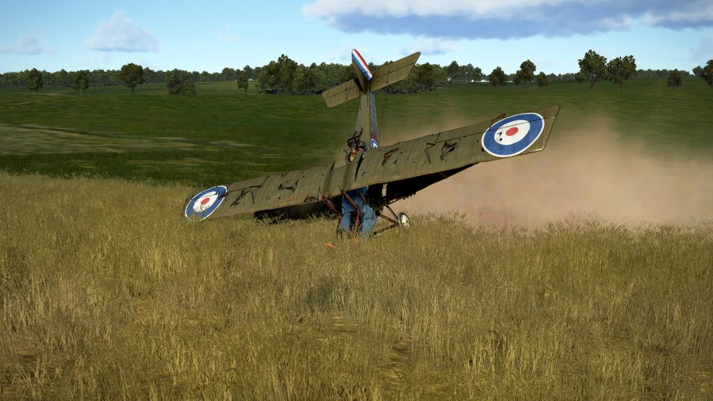 Things didn’t go well as the less powerful and earlier R.E.8 had none of the power of the DH4. After almost a minute trying to gain altitude, I crashed into a farmers field. Whoops!