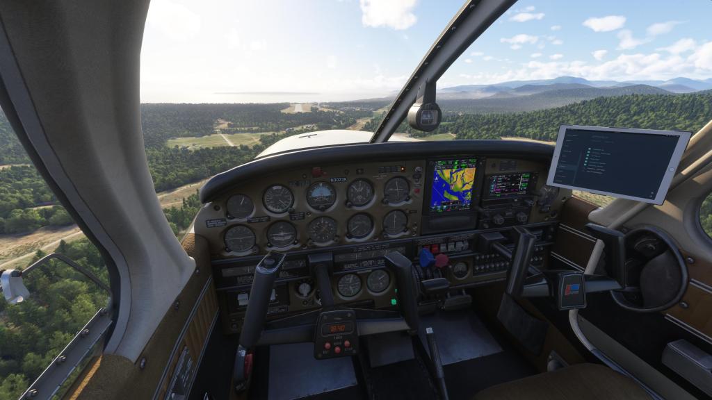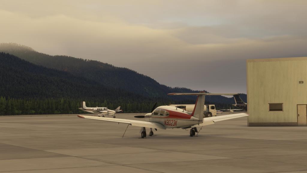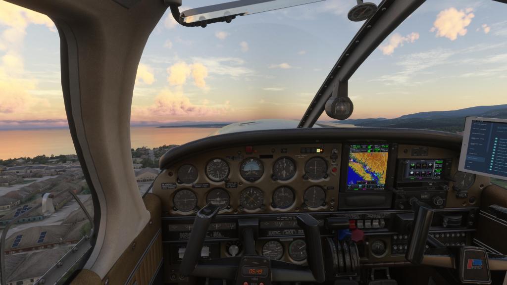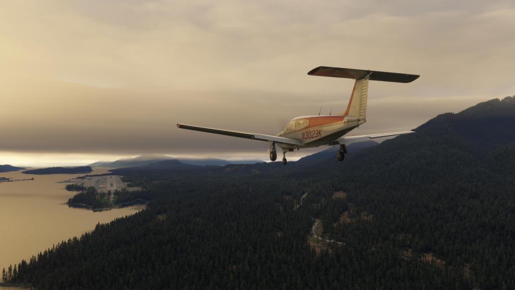 A short run along the coast brought me into the scenic approach into the airport and touchdown. This is quite the interesting airport as its used by 737s and other airliners and by smaller craft. The runway is just long enough to handle those aircraft so a Piper Arrow had no struggles to get a nice smooth landing in.