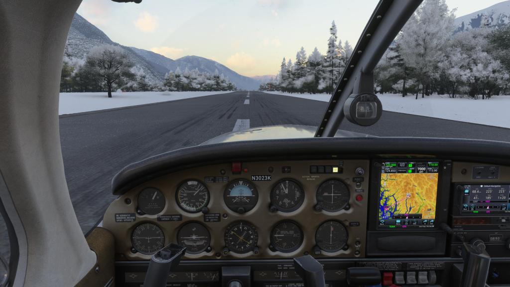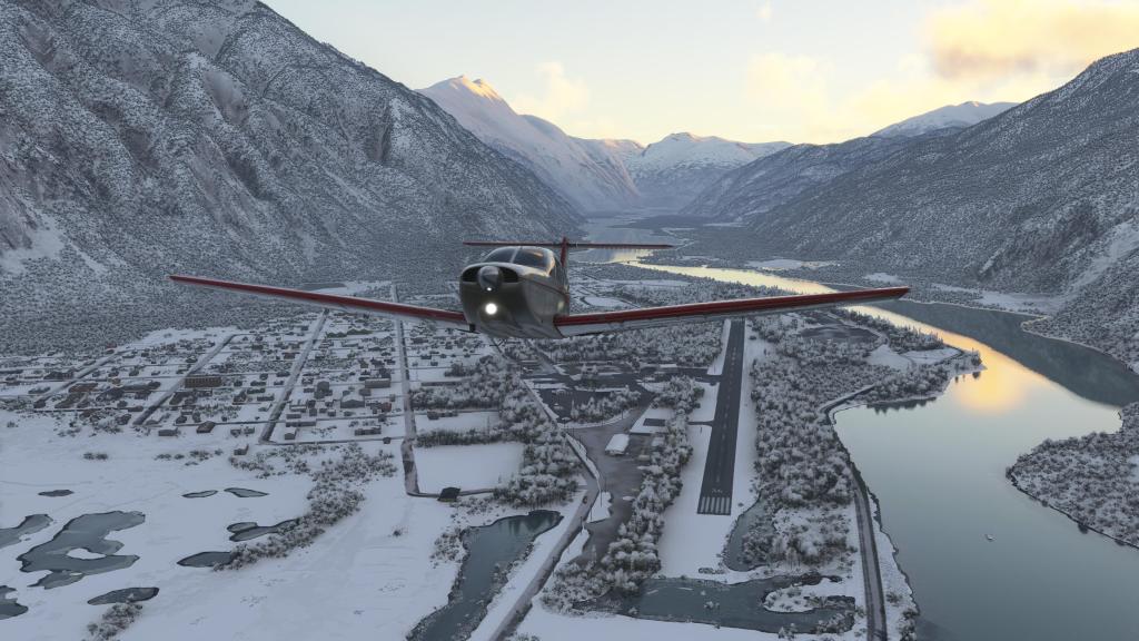 This was even more apparent on approach to Stewart where there was snow everywhere despite the outside temperature registering as 21c in the sim and 20c at the real world weather station at the airport. Still, we have real world snowpack tracking in a sim and I still think that’s cool even when it doesn’t fully work!