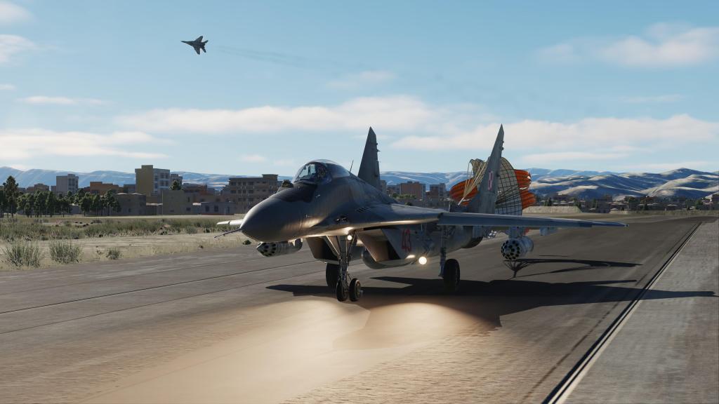The landing is perhaps the hardest part about flying this aircraft though its nothing like the adventures you go on with the MiG-21. With the Fulcrum, you’re rewarded with a good stabilized approach and a gentle flare before touchdown. Bouncing on the forward gear usually leads to an unstable roll and disaster but if you can keep the pressure more on the back wheels it tends to be quite well behaved. A drag chute manages deceleration well.