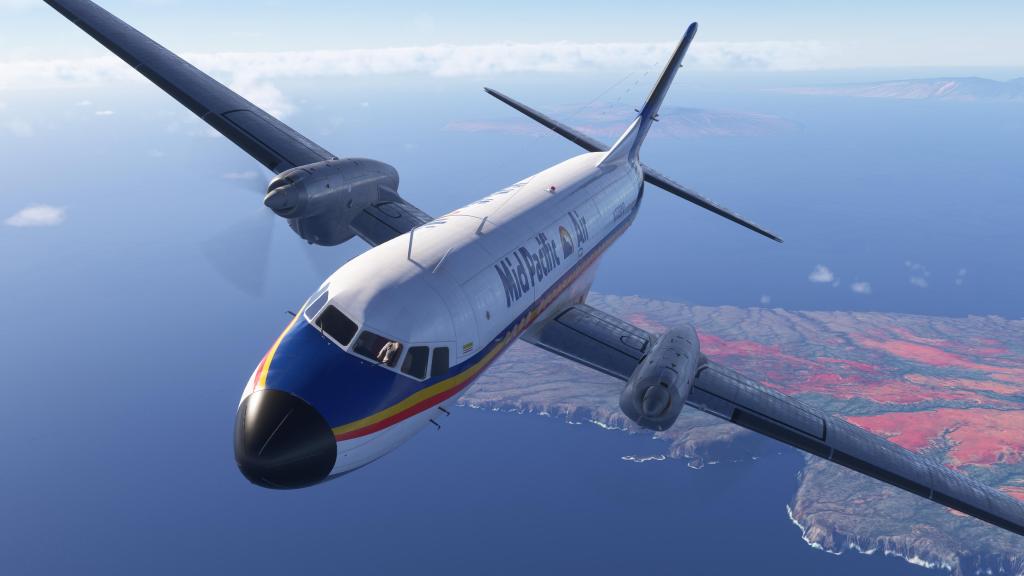 The sound work is middle of the pack with good and bad points. Its not a top tier entry and there are some rough transitions during the start-up from initial engine start through the ramp up sequence and into continuous power. I feel like this could have been done just a bit better than it currently is. During operation, however, the sounds are quite decent while cruising along. The Rolls Royce Dart engines are, from the YouTube videos I’ve found, a bit … “screamy” sounding. There is an attempt at capturing that quality here too, though it doesn’t sound like a fully authentic recording.