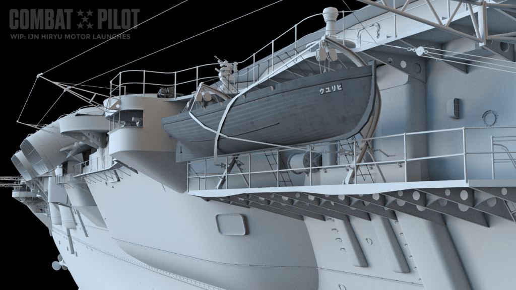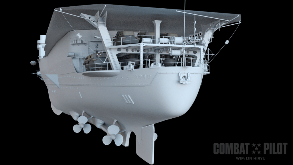 And for the final big piece, we get an update on the IJN Hiryū. The carrier is beginning to get some textures applied to it and there are a ton of details in place on the ship. Work on the flight deck is the next part of the effort.