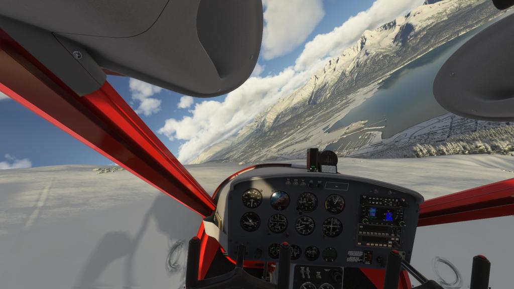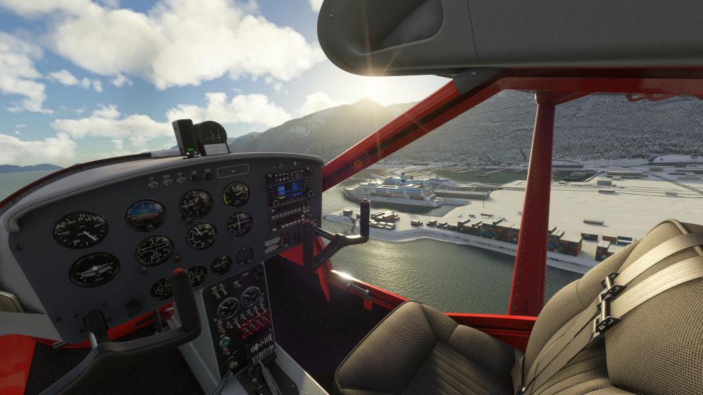 Changing things up on my second flight, I kept the tundra tires but swapped out the modern glass cockpit for a more traditional analogue setup. This flight was meant to be a very immediate sightseeing trip around an airport that I haven’t visited in a while and then more of a flight dynamics shakedown. I wanted to see what the A-32 was like in different stall situations and how it’d handle turns in tight mountain passes. No better place than to launch myself from the recently updated Northern Sky Studios PAWD Seward airport.