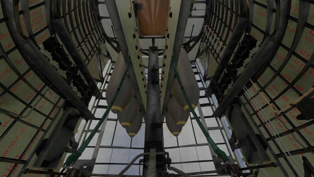 Now let’s have a look at the interior. You’ll all remember from the roadmap that texture improvements are listed several times and I think you’ll begin to see why. The cockpit is really superb with crisp details on the instruments and on the front panel. There are a few areas where some of the textures get a little blurry but mostly they are really solid. As we go back through the aircraft, however, you’ll see a fair bit of work in progress at the radio station, in the bomb bay, the gunners positions and more. There is also, thinking glass half full here, quite a bit that is already detailed and those parts are really good.