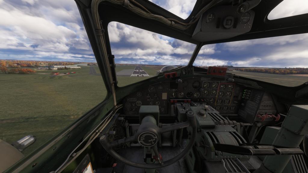 Once powered up, it was time to taxi. The B-17 is a relatively large aircraft and its a tail dragger. MSFS in the past has not been great at taildragger physics, however, this works reasonably well. A bit of differential thrust on the left or right outboard engine helps swing the aircraft around but its not overly twitchy and a fair bit of throttle is required to get it going and keep it going through a turn. There is a tailwheel lock/unlock system, however, I struggled to get a good feel for it so far. The flight model (and the ground interaction presumably) is still work in progress so maybe there’s a bit to do there.