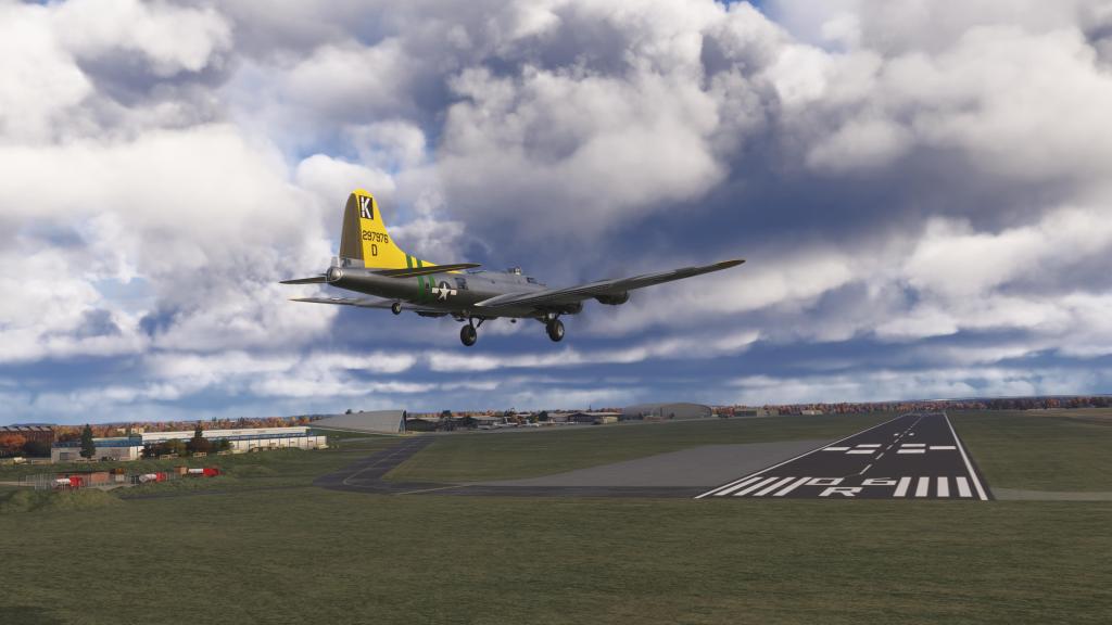 With appropriately moody autumn weather of mixed sun and clouds, rain showers and crisp air I loaded up the B-17G for the first time. My route for today is a replication of one that I flew just a few months ago with the Just Flight Vulcan.