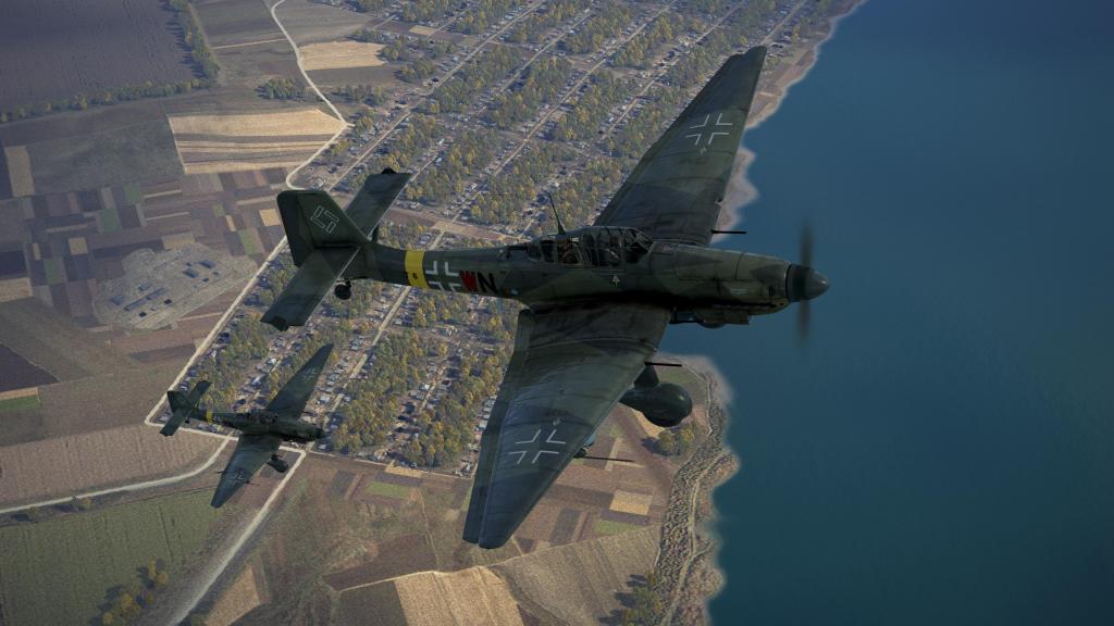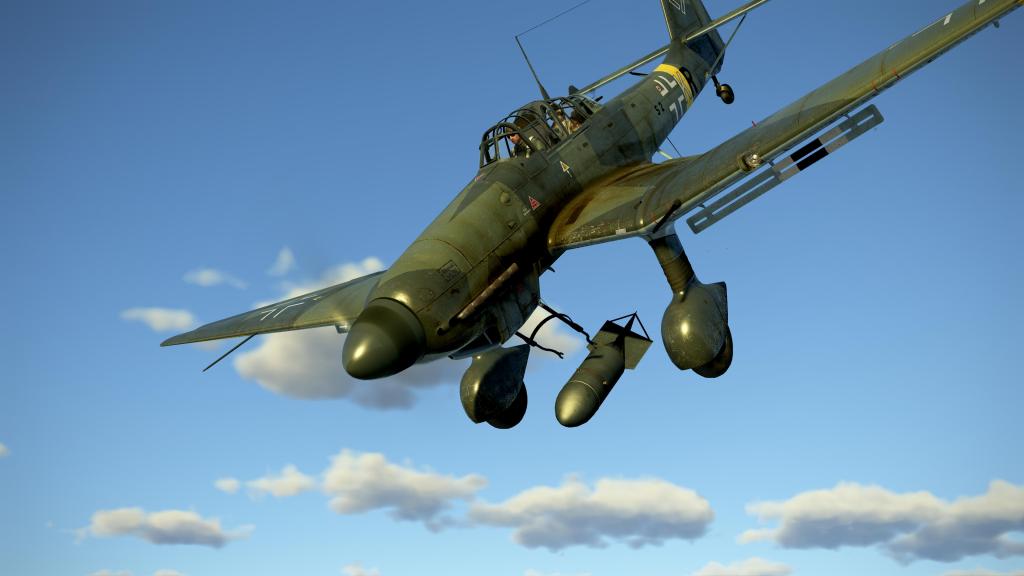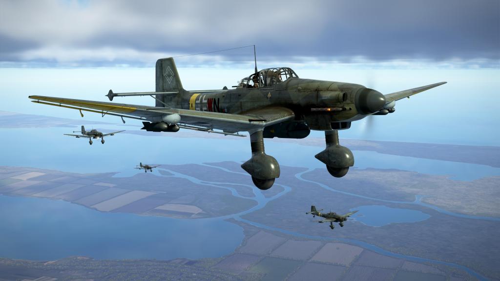 The Ju87 is quite a strong attacker if I can avoid the fighter defenses and if the flak at the target is relatively light. The optional Stuvi bomb sight means more precision drops on target. You can also use a shallower dive angle and no dive brakes keeping more speed and reducing vulnerability on the way out of the target zone.