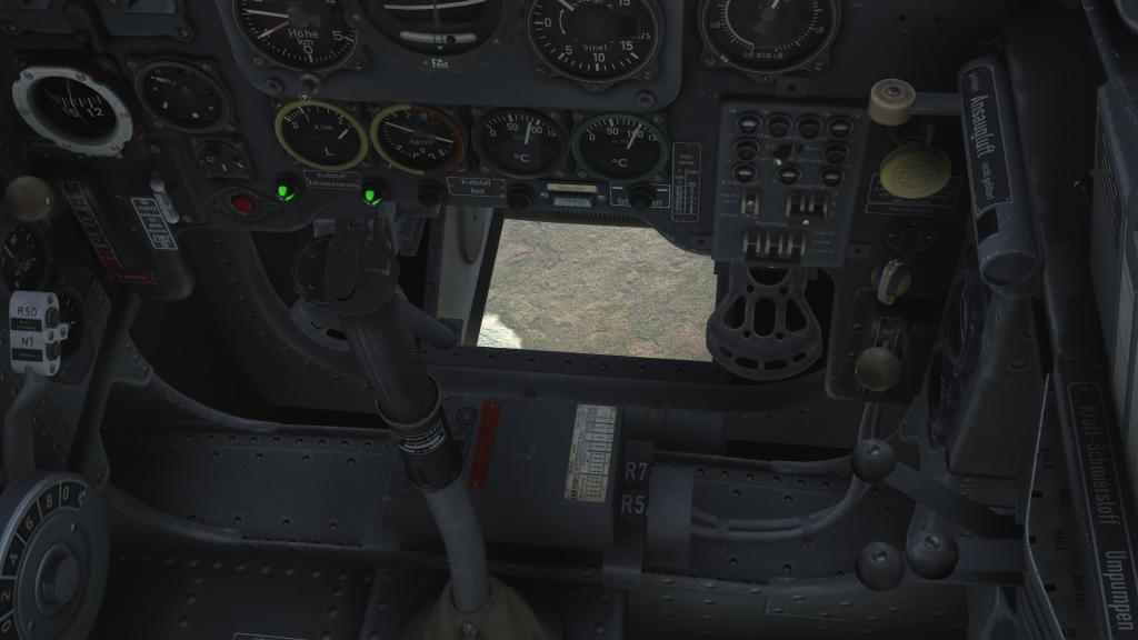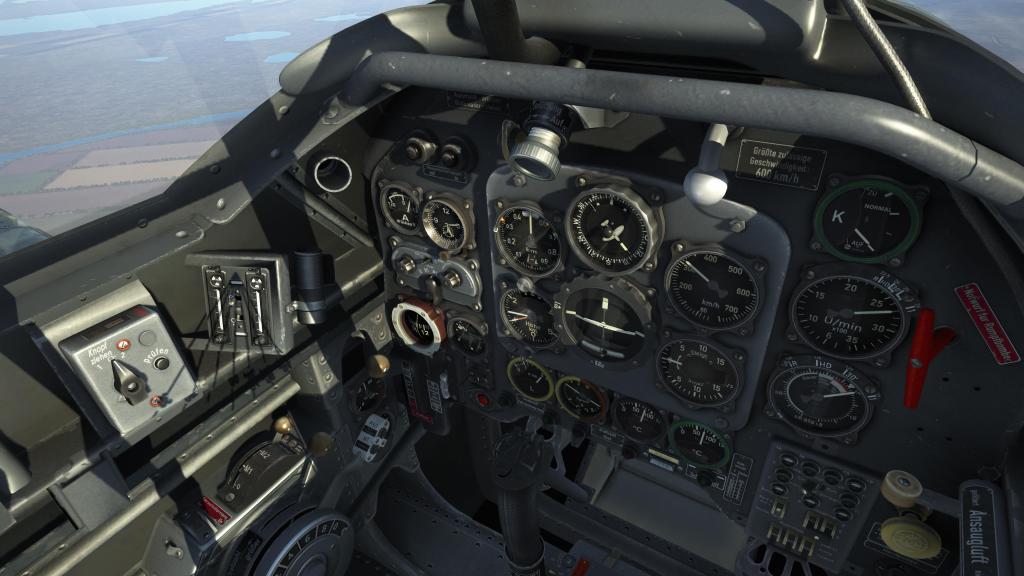 In the cockpit we see what is virtually the same as from the earlier model. It has sharp and easy to read instrumentation, buttons, dials, switches and controls. The lower window viewport still opens and closes with a nice smooth animation.