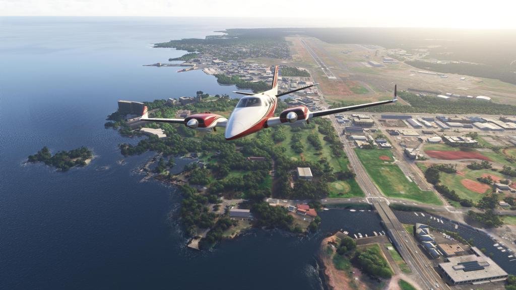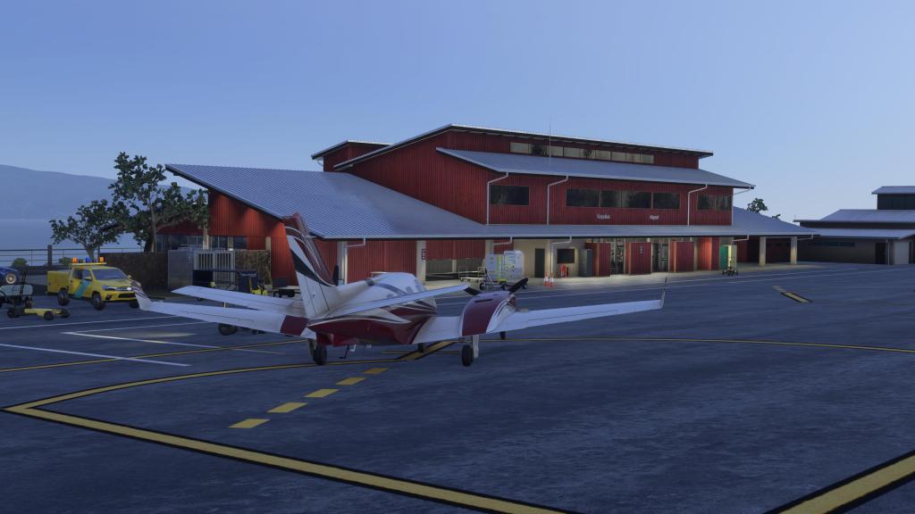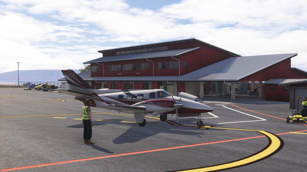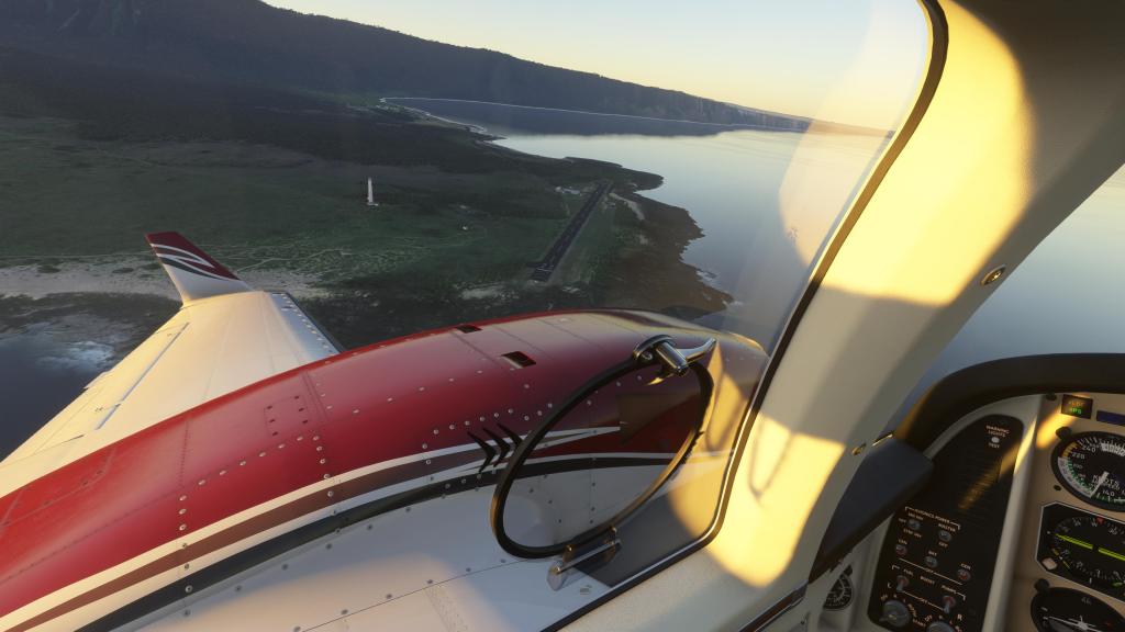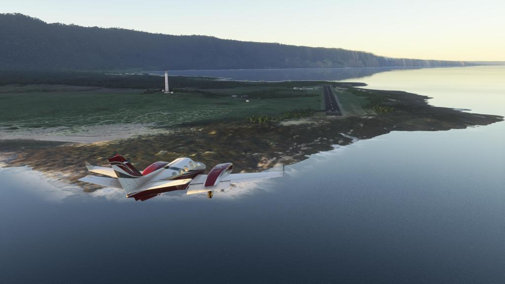 The scenery pack for this airport includes a lighthouse and lots of little terminal details. Just like the other airports we’d visited. The scenery as you come onshore is generally good though the break between ocean and land was a bit iffy. Still, the overall scene was incredible especially in the morning light.