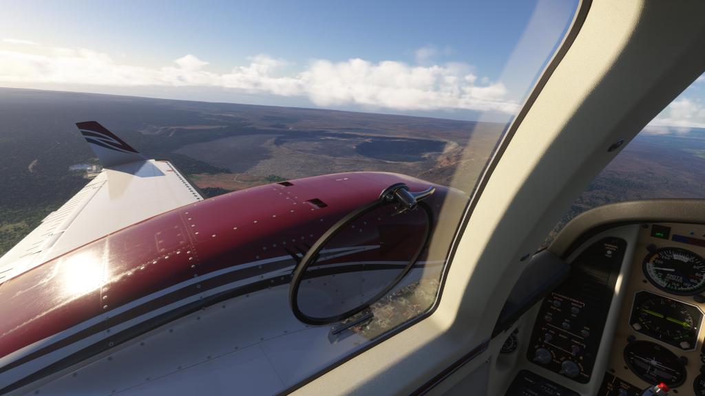 Departing Hilo airport, I pointed my nose southwards along the coast of Hawai’i because I wanted to do a little exploring along the way. And the exploration was worth it. My first destination was Kīlauea – a famous volcano. This is an active shield volcano and in MSFS you can see both the crater as well as a custom POI featuring the visitor centre on the edge of the volcano.