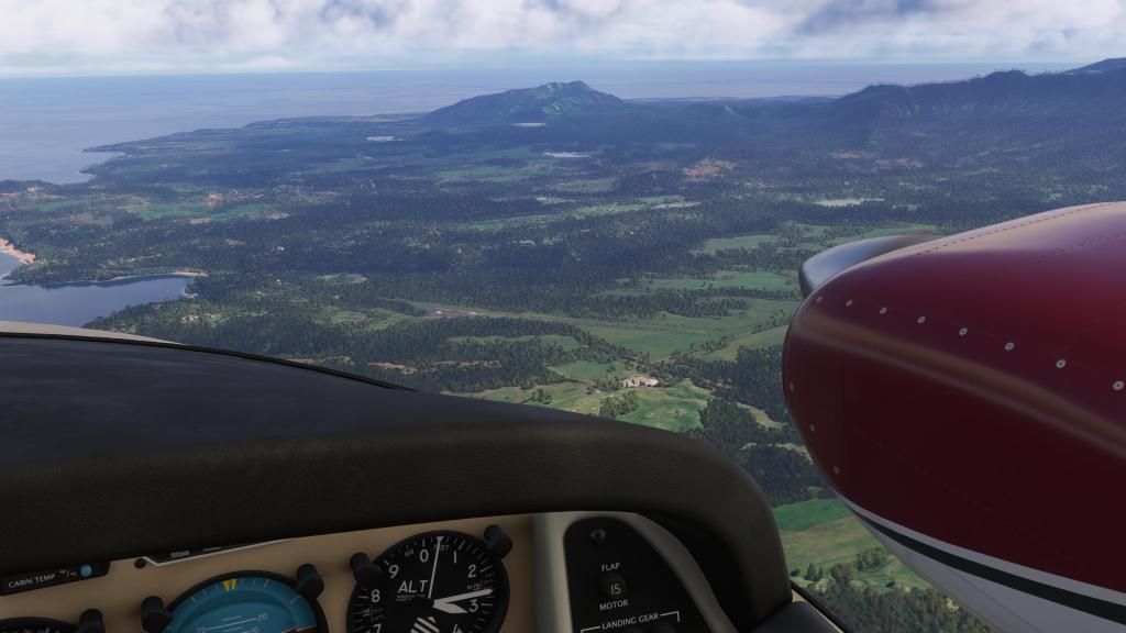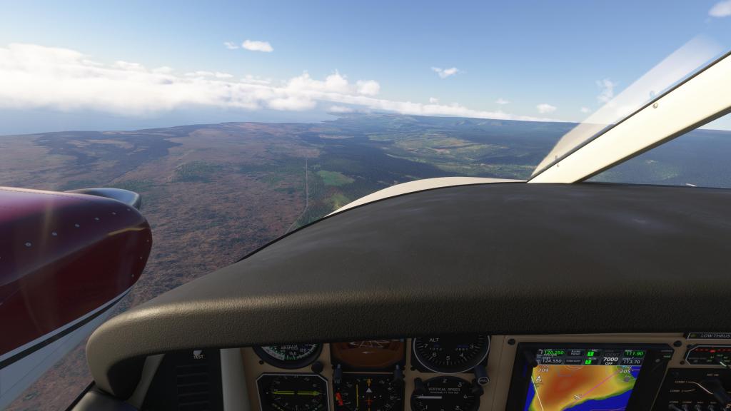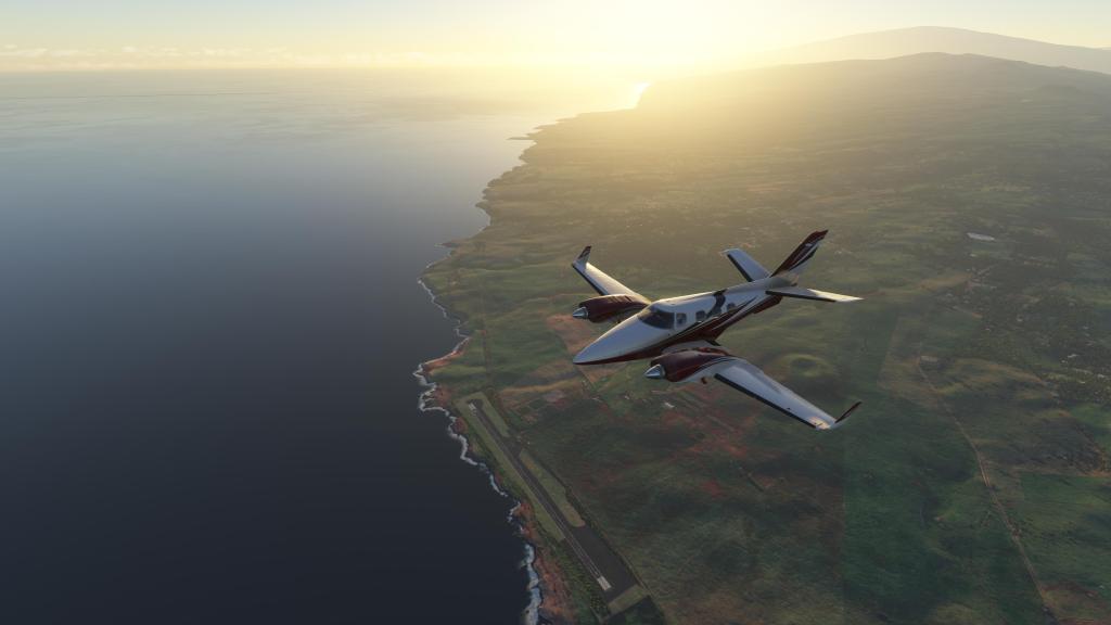 After reaching the southern tip, I turned north along the western coast and worked my way up to the destination. (PHKO) Kona International Airport comes with scenery thanks to one of the many World Updates so that one was covered. It’s a beautiful airport and the scenery around it is reasonably impressive – though there were more impressive ones ahead.