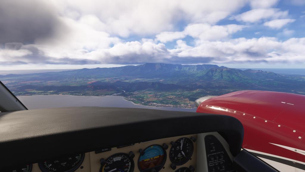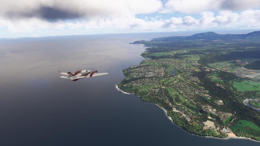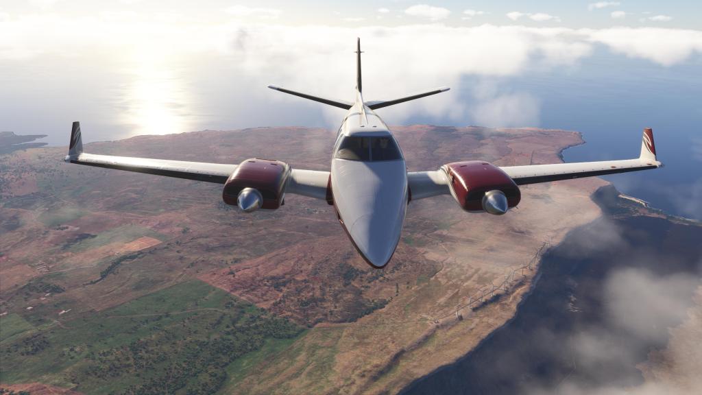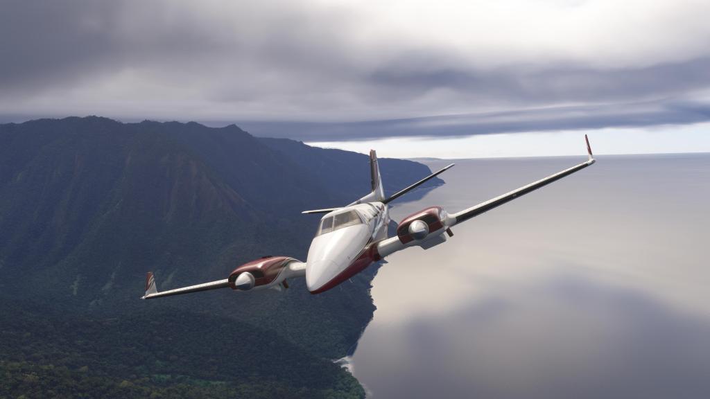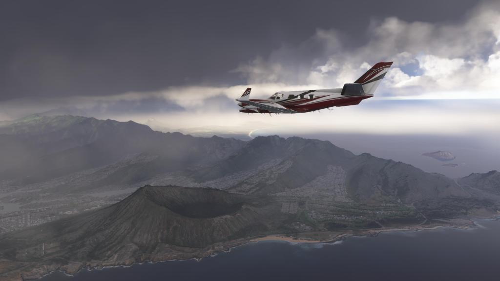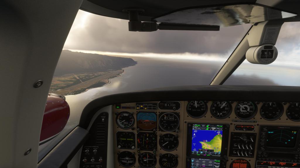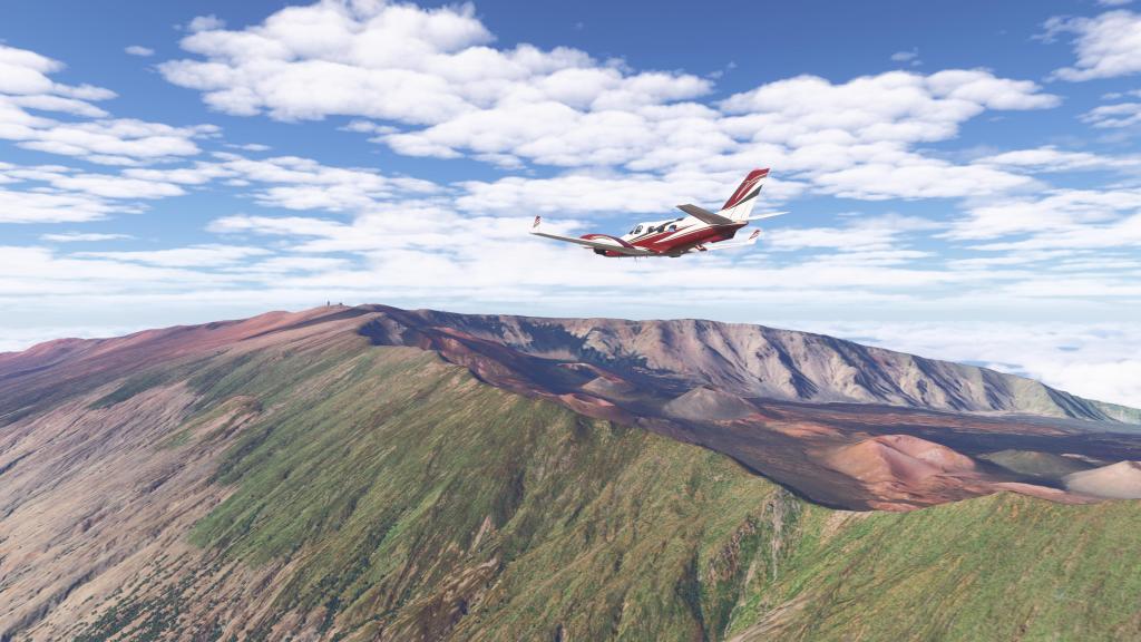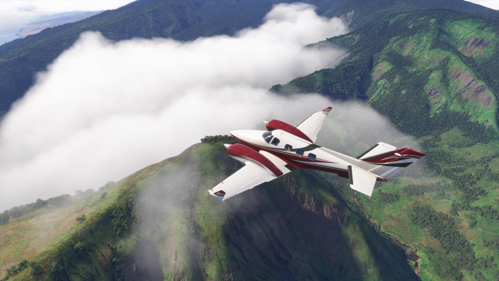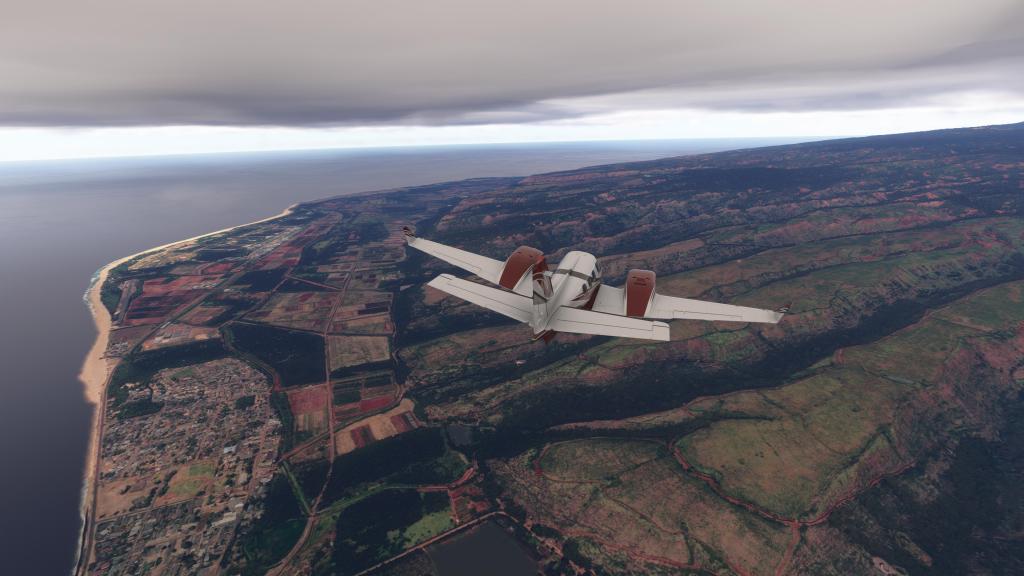 After that, we headed north and made the brief crossing from Hawai’i to over to Maui. In the screenshots you can see my friend flying his A2A Aerostar on the same route. There’s no model match for the Aerostar but it did sub in a Cessna 310 which sort of works as a substitute.