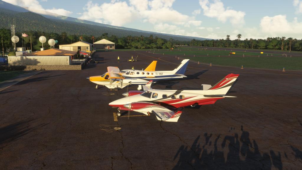 For this journey, I worked my way from the eastern most island (with an airport) to the western most island. That meant starting on the big island, Hawai’i, at Hilo International Airport. No scenery for this airport but the vast majority of the airports I visited during this journey include scenery developed by Northern Sky Studios. I’ll provide links as we go!