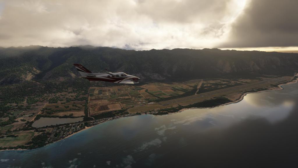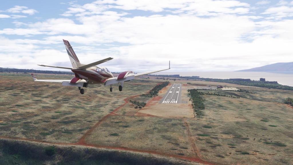 Two friends joined me on this next sortie flying the TBM and Aerostar! We first began by departing Kalaupapa and then climbing the cliffs to the plateau where we then began doing a series of touch and go practice landings at Molokai Airport. Kalaupapa and Molokai are part of the same scenery pack which is part of the reason why I wanted to drop by here. The airports are located very close to each other so it was just a short deviation from our course.