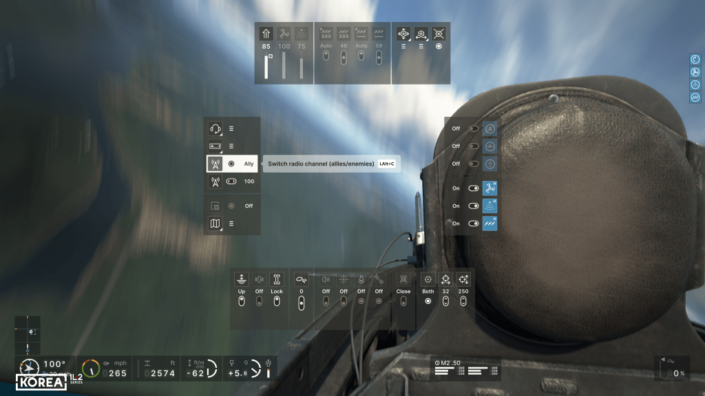 1CGS has rethought that and then added quite a bit more too. The new HUD-styled graphics can be configured to show a lot more. Altitude, speed, Mach number, G-load, etc. It can show engine parameters, weapon status, ammo loads, and so forth in what they are calling the “cross” or “sector” menu. These are branching and can expand as you dig into them. It’ll let you manage complex systems by clicking and changing on the UI while simultaneously being reminded what the keybind for it is. I’m betting we’ll spend considerably less time digging through the control menu trying to remember what it is that we bound to some more obscure control. That’s what I hope anyways!