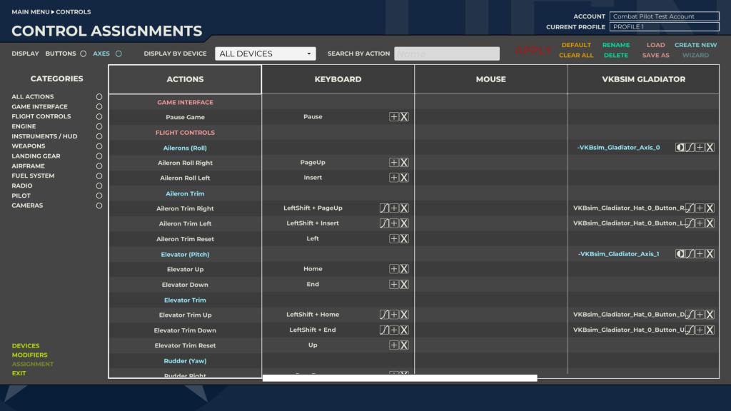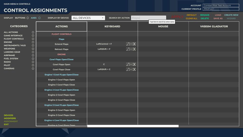 Then you’ll participate in the time honoured tradition of setting up your controls. A flight simulation mainstay, Combat Pilot’s control system has evolved quite a bit over the course of the Patreon Alpha experience and the system is already quite well evolved with the ability to sort, isolate by type and even do searches for the control you want to bind. Its fast, fluid, and functional though its no more (or less) fun than any other control setup process.