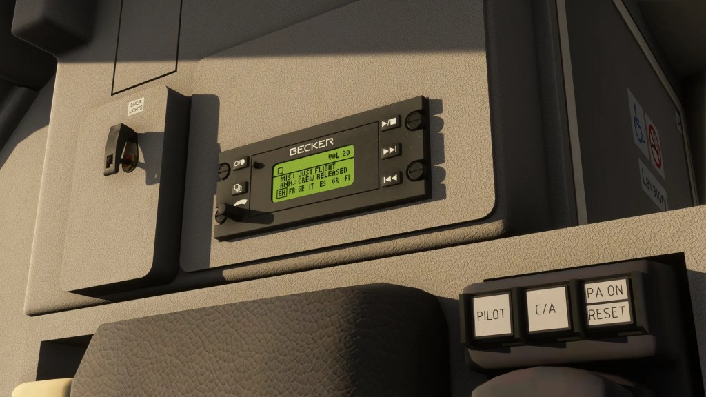 They are also working on the auto cabin crew system. Just Flight have done a great job with cabin crew interaction before and it sounds like this will have even more. Pilot callouts, cockpit to cabin and cabin to cockpit interactions, and a digital music player are all standard. Welcome onboard announcements and safety briefings are included. Its all customizable too so you can replace them with your own if you wish.