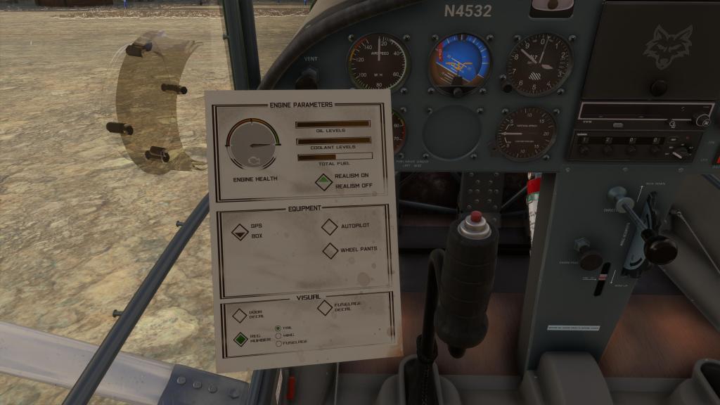 I was surprised to find out that the aircraft has a little flip out pad setup that gives you some extra options for branded logo placement, registration code placement (tail, fuselage or wing), and the ability to control a limited amount of maintenance items. The thing that really won me over with this aircraft was when I overdid it on the engine for a prolonged period of time and the engine health started to degrade.
